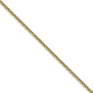 A simple, alternating pattern of tiny oval links join together to create a classic cable chain made of gleaming 10k yellow gold. The delicate supple design of this 2mm width, 18-inch long chain closes with a lobster claw clasp.