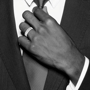 • Distinctive style featuring a brushed and polished finish, a grooved center design, and a comfort fit shank designed from rhodium-plated 14k white gold. This men's band is approximately 6mm in width and 1.35mm in thickness (light weight). Suitable for engraving.