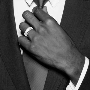 • A traditional band created from rhodium-plated 14k white gold featuring a classic dome design with a polished finish and a comfort fit shank. It is approximately 1.95mm in thickness (standard weight) and 8mm in width. Suitable for engraving.