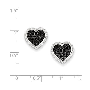 Black & White Diamond 13mm Heart Post Earrings in Sterling Silver