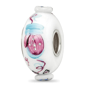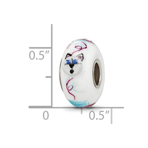 Each meticulously hand-blown hand-painted Fenton glass charm is initialed by the artist and finished with a ceramic glaze and a sterling silver core embossed with Fenton USA! This white charm features a three dimensional cat and mitten design that is approximately 8mm in width by 15mm in length. Fenton Made in America handcrafted glass beads are compatible with and will fit most major brand, 3mm width, bead style bracelets and necklaces. Colors and size may vary slightly.