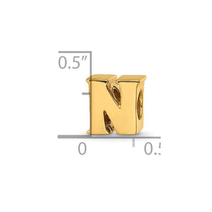 Letter N Bead Charm in 14k Yellow Gold Plated Sterling Silver