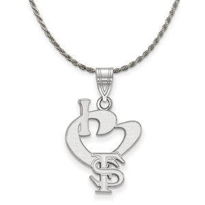 Sterling Silver Florida State Large I Love FS Pendant Necklace