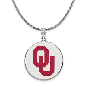 Sterling Silver U. of Oklahoma XL Enamel 'OU' Disc Necklace