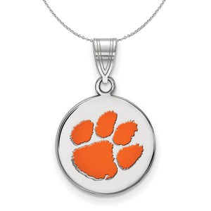 If you are a fan of Clemson University and the Tigers then you need to show your school spirit with this Clemson University necklace. We are a certified college jewelry retailer and this authentic item is officially licensed. It is crafted from Sterling Silver and crafted by LogoArt in the USA. Includes an 18 Inch, 1.25mm cable chain.