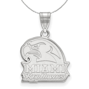 • If you are a fan of Miami University and the Redhawks then you need to show your school spirit with this Miami University necklace. We are a certified college jewelry retailer and this authentic item is officially licensed. It is crafted from Sterling Silver and crafted by LogoArt in the USA. Includes an 18 Inch, 1.25mm sterling silver franco chain.