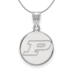 • If you are a fan of Purdue University and the Boilermakers then you need to show your school spirit with this Purdue University necklace. We are a certified college jewelry retailer and this authentic item is officially licensed. It is crafted from Sterling Silver and crafted by LogoArt in the USA. Includes an 18 Inch, 1.25mm sterling silver franco chain.