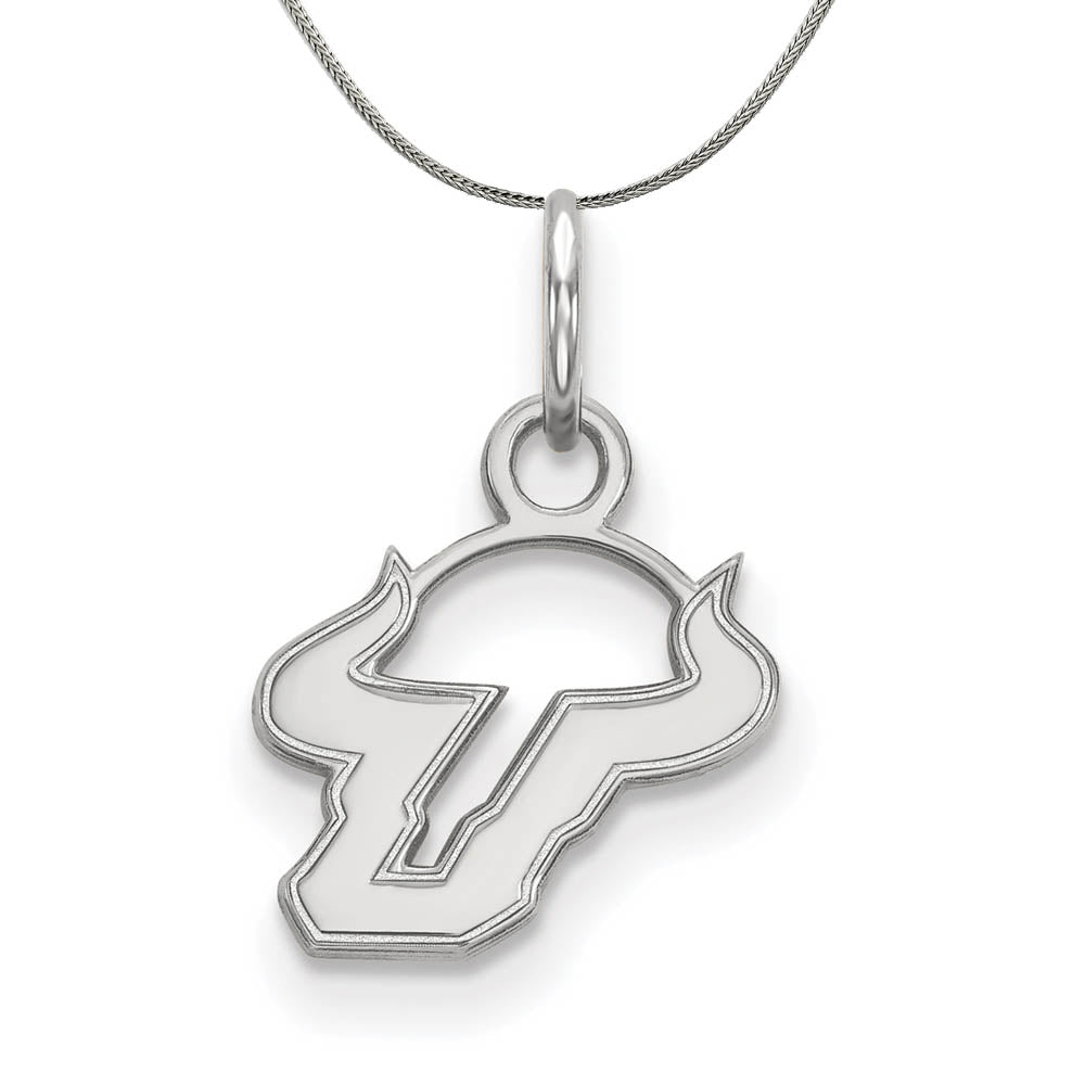 • If you are a fan of The University of South Florida and the Bulls then you need to show your school spirit with this University of South Florida necklace. We are a certified college jewelry retailer and this authentic item is officially licensed. It is crafted from Sterling Silver and crafted by LogoArt in the USA. Includes a 20 Inch, 1.25mm sterling silver franco chain.