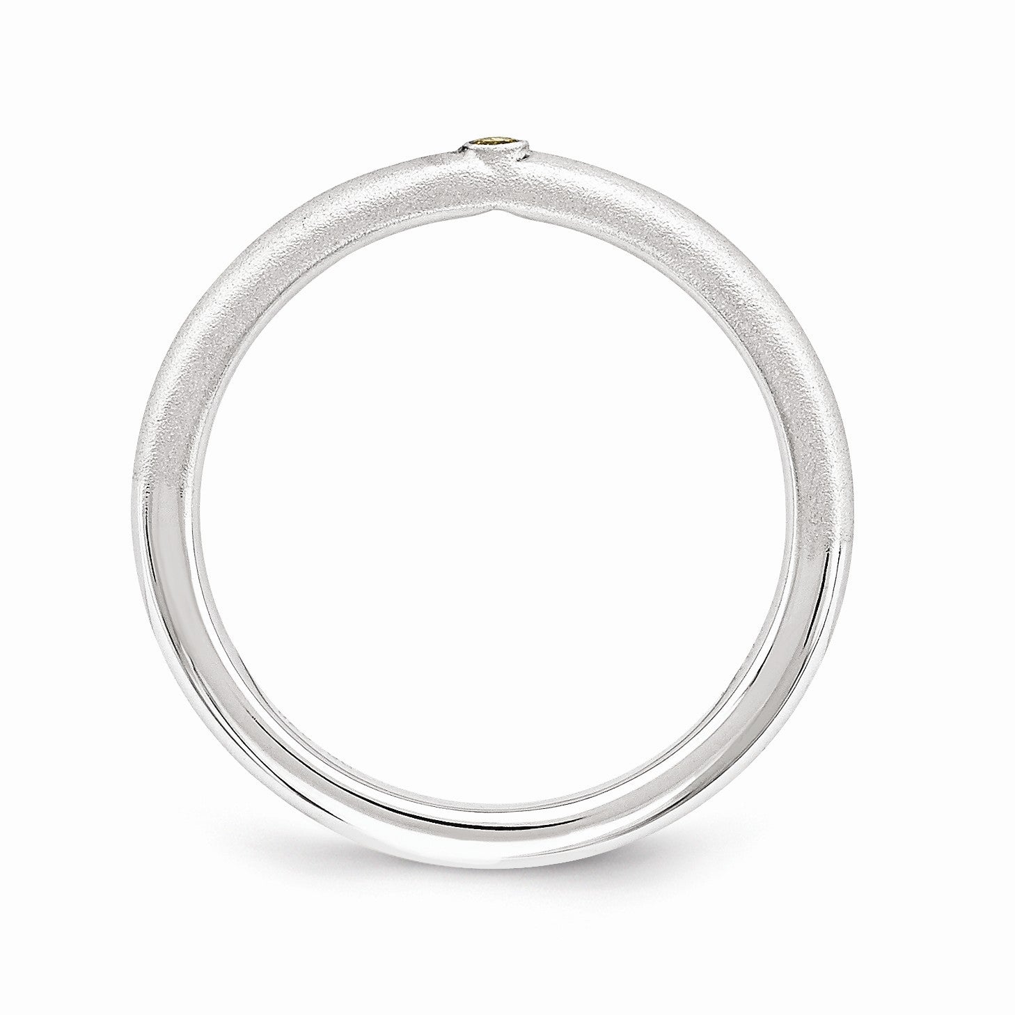 One ring, two great looks! A 2. Mm width ring made of sterling silver features half a satin finished band that is bezel set with a single 1-point heat-treated yellow diamond. The other half features a smooth polished finish. Wear it alone or stacked in a collection, guaranteed to fit together perfectly with all of the mix and match Stackable Expressions rings.