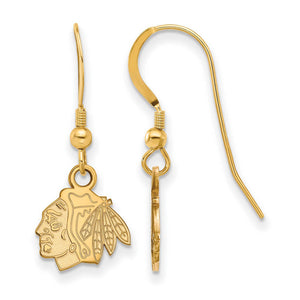 SS 14k Yellow Gold Plated NHL Chicago Blackhawks XS Dangle Earrings - Black Bow Jewelry Company