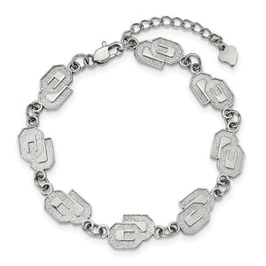 It is time to celebrate your favorite school, the University of Oklahoma! We are a certified retailer and this authentic item is Officially Licensed by the University of Oklahoma. It is an adjustable link style bracelet created from stainless steel. The 8 small charms are approximately 10mm (3/8 inch) in width. Closes with a lobster clasp and is adjustable in length from 7 inches to 8.5 inches.