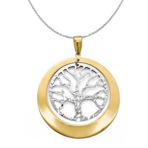 Sterling Silver and Gold Tone Textured Tree Circle 38 x 48mm Necklace