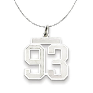 Celebrate your favorite sports player, lucky number or milestone date in your life with a prominent rhodium-plated sterling silver charm. Each laser-cut satin and polished number is approximately 15mm (9/16 inch) in length, which is finished with a 3mm top bar and classic jump ring that will accommodate up to a 3mm chain. Includes a 1.25mm, 16 inch sterling silver cable chain.