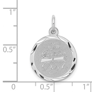Memorialize this special occasion forever and celebrate their success with a graduation day charm fashioned from solid sterling silver with a contrasting satin and polished finish. It is approximately 15mm (9/16 inch) in diameter and suitable for engraving on the backside. Made in the U.S.A. Chain not included.