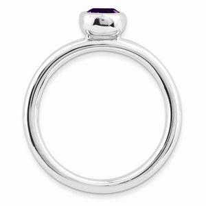 Rhodium Plated Sterling Silver Low Profile 5mm Amethyst Stack Ring