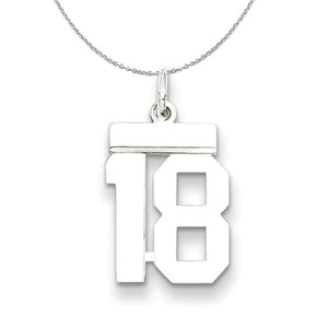 Silver, Athletic Collection Medium Polished Number 18 Necklace