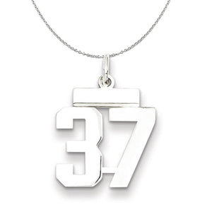 Silver, Athletic Collection Medium Polished Number 37 Necklace