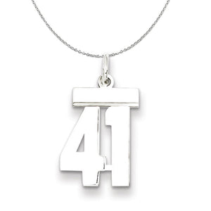 Celebrate your favorite sports player, lucky number or milestone date in your life with a prominent rhodium-plated sterling silver charm. Each polished number is approximately 16mm (5/8 inch) in length, which is finished with a 2mm top bar and a classic jump ring that will accommodate up to a 3mm chain. Includes a 1.25mm, 16 inch sterling silver cable chain.