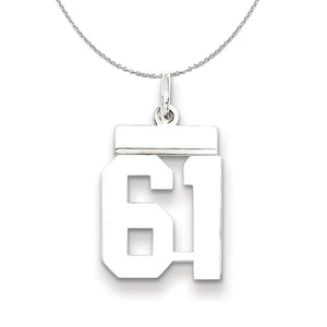 Silver, Athletic Collection Medium Polished Number 61 Necklace
