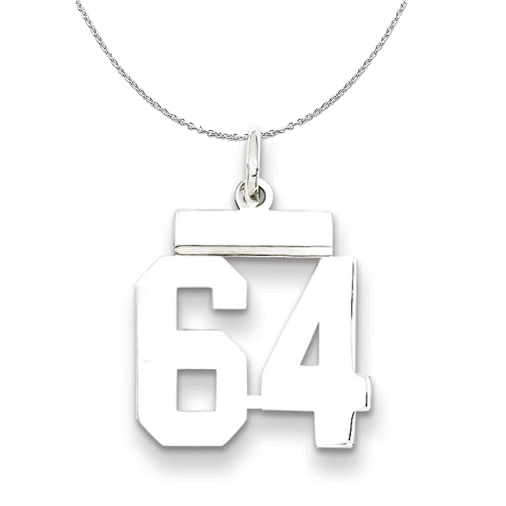 Celebrate your favorite sports player, lucky number or milestone date in your life with a prominent rhodium-plated sterling silver charm. Each polished number is approximately 16mm (5/8 inch) in length, which is finished with a 2mm top bar and a classic jump ring that will accommodate up to a 3mm chain. Includes a 1.25mm, 18 inch sterling silver cable chain.