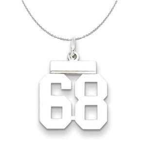 Celebrate your favorite sports player, lucky number or milestone date in your life with a prominent rhodium-plated sterling silver charm. Each polished number is approximately 16mm (5/8 inch) in length, which is finished with a 2mm top bar and a classic jump ring that will accommodate up to a 3mm chain. Includes a 1.25mm, 20 inch sterling silver cable chain.