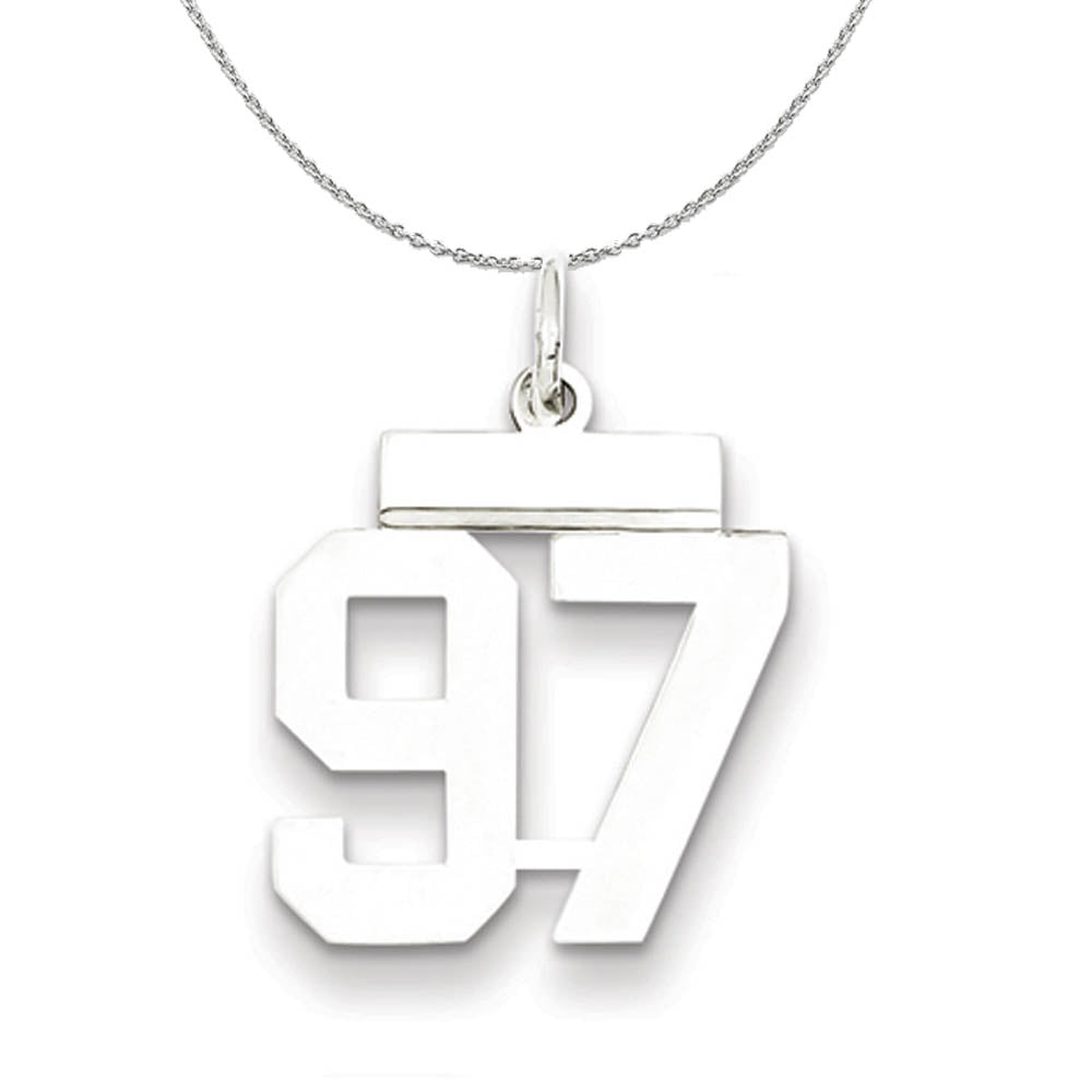 Silver, Athletic Collection Medium Polished Number 97 Necklace