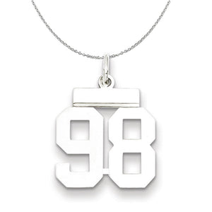 Celebrate your favorite sports player, lucky number or milestone date in your life with a prominent rhodium-plated sterling silver charm. Each polished number is approximately 16mm (5/8 inch) in length, which is finished with a 2mm top bar and a classic jump ring that will accommodate up to a 3mm chain. Includes a 1.25mm, 20 inch sterling silver cable chain.