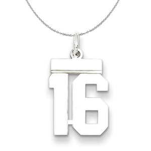 Silver, Athletic Collection, Small Polished Number 16 Necklace
