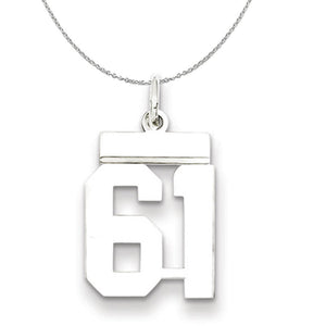 Celebrate your favorite sports player, lucky number or milestone date in your life with a prominent rhodium-plated sterling silver charm. Each polished number is approximately 13mm (1/2 Inch) in length, which is finished with a 2mm top bar and a classic jump ring that will accommodate up to a 3mm chain. Includes a 16 inch, 1.25mm sterling silver chain with a lobster clasp closure.