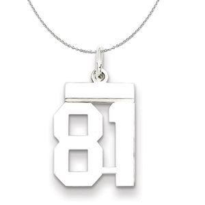 Celebrate your favorite sports player, lucky number or milestone date in your life with a prominent rhodium-plated sterling silver charm. Each polished number is approximately 13mm (1/2 Inch) in length, which is finished with a 2mm top bar and a classic jump ring that will accommodate up to a 3mm chain. Includes a 16 inch, 1.25mm sterling silver chain with a lobster clasp closure.