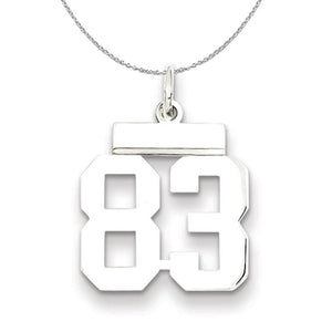 Celebrate your favorite sports player, lucky number or milestone date in your life with a prominent rhodium-plated sterling silver charm. Each polished number is approximately 13mm (1/2 Inch) in length, which is finished with a 2mm top bar and a classic jump ring that will accommodate up to a 3mm chain. Includes a 24 inch, 1.25mm sterling silver cable chain with a lobster clasp closure.