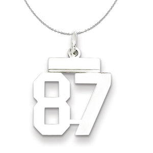Celebrate your favorite sports player, lucky number or milestone date in your life with a prominent rhodium-plated sterling silver charm. Each polished number is approximately 13mm (1/2 Inch) in length, which is finished with a 2mm top bar and a classic jump ring that will accommodate up to a 3mm chain. Includes a 16 inch, 1.25mm sterling silver chain with a lobster clasp closure.