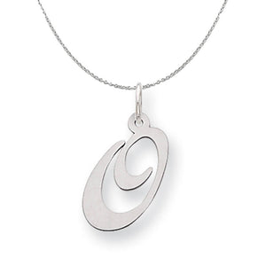 Silver, Ella Collection Medium Fancy Script Initial O Necklace