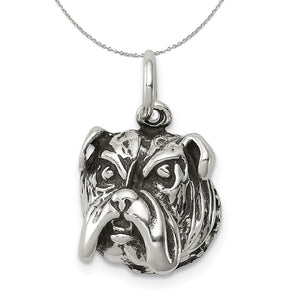 Warm your heart and elevate your style with a fashionable dog charm featuring your favorite breed. This compact docile dog captured in 14k yellow gold features a two-dimensional, open back design with a antiqued finish. It measures approximately 12mm (7/16 Inch) in width by 20mm (3/4 Inch) in length, which includes the jump ring. Includes a 1.25mm, 20 inch sterling silver cable chain.