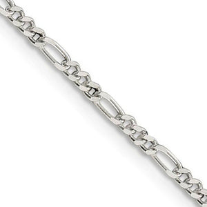A beautiful basic, perfect on its own or combined with other chains to create your own personal style. Measuring approximately 2.25mm in width by 8-inches in length, this polished figaro chain created from sterling silver features a solid flat link design and closes securely with a lobster-claw clasp.