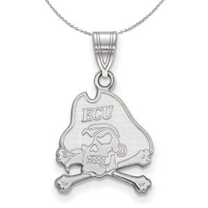 If you are a fan of East Carolina University and the Pirates then you need to show your school spirit with this East Carolina University necklace. We are a certified college jewelry retailer and this authentic item is officially licensed. It is crafted from Sterling Silver and crafted by LogoArt in the USA. Includes an 18 Inch, 1.25mm cable chain.