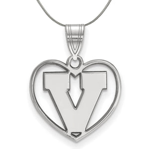 Sterling Silver U. of Virginia Initial V Heart Necklace