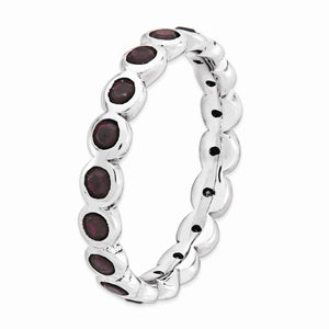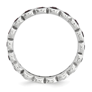 Use this simulated birthstone ring to symbolize an important month or use multiples to create a personalized family combination. Representing the month of June, this 3. Mm wide band fashioned from rhodium plated sterling silver is bezel set with purple/red crystals all the way around. Guaranteed to fit together perfectly with all of the mix and match Stackable Expressions rings. This item is backordered. Please allow 7-10 business days for delivery