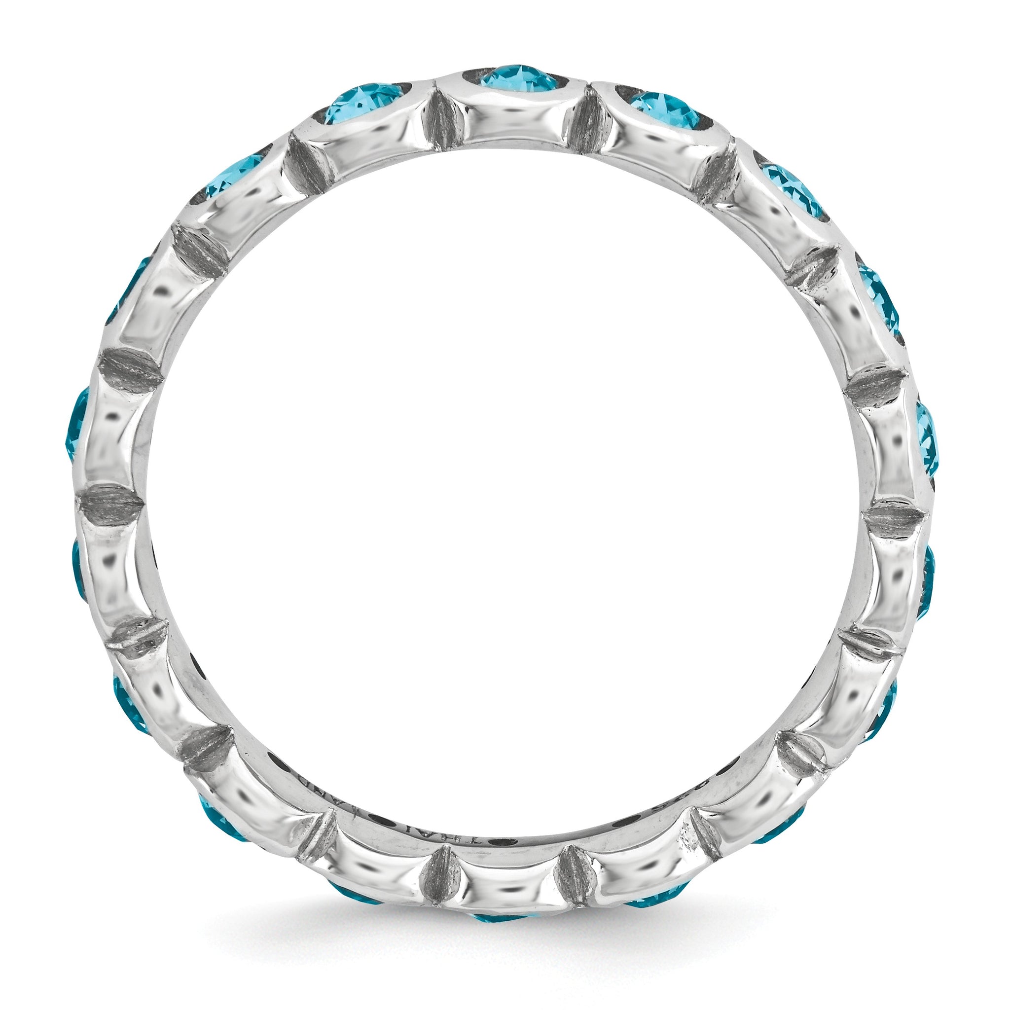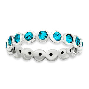 Use this simulated birthstone ring to symbolize an important month or use multiples to create a personalized family combination. Representing the month of December, this 3. Mm wide band fashioned from rhodium plated sterling silver is bezel set with blue crystals all the way around. Guaranteed to fit together perfectly with all of the mix and match Stackable Expressions rings.