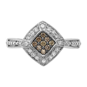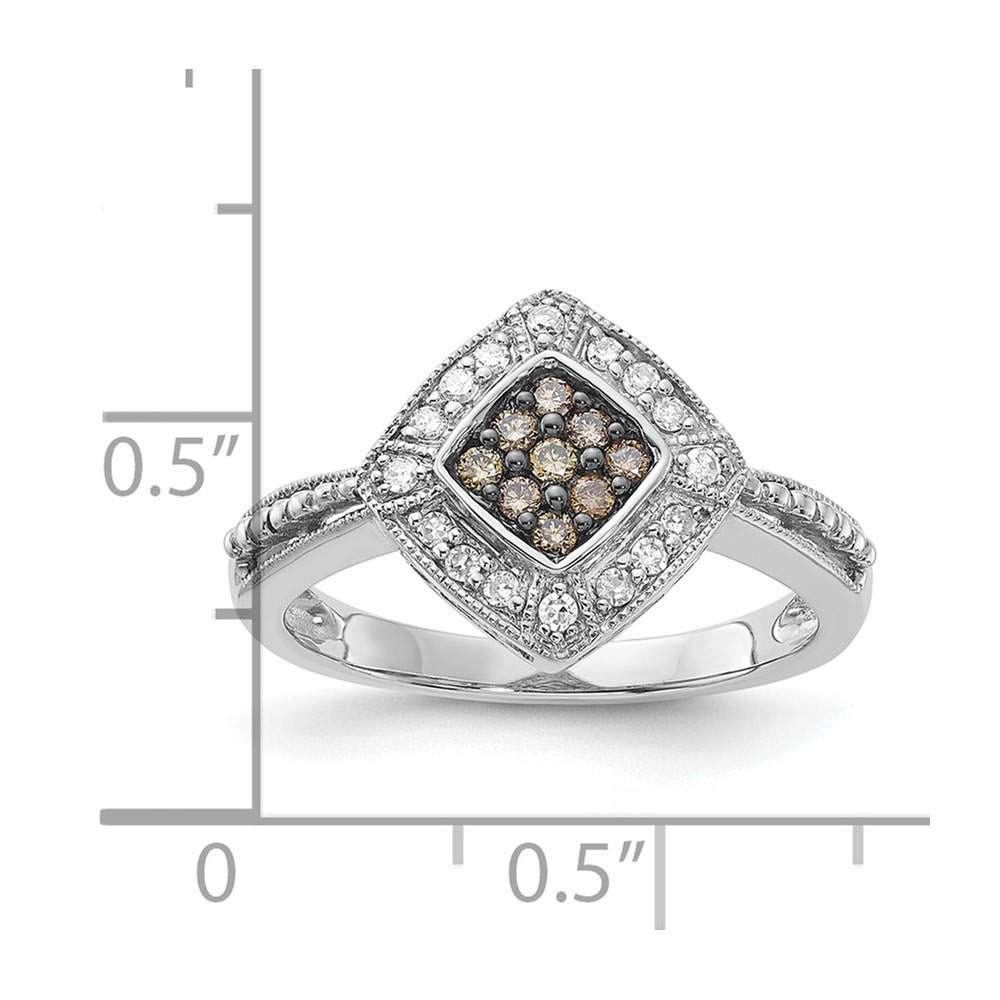 1/4 Ctw Champagne & White Diamond 12mm Rhombus Ring in Sterling Silver