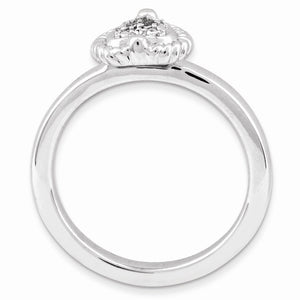 You cannot go wrong by adding a diamond ring to any stackable combination. This polished 2.5 band fashioned from rhodium plated sterling silver features a fluted heart adorned with H-I color diamonds totaling .22 of a carat. Guaranteed to fit together perfectly with all of the mix and match Stackable Expressions rings.