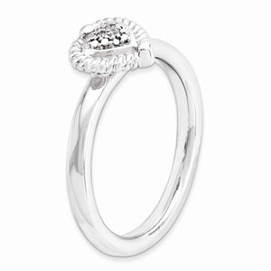 • You cannot go wrong by adding a diamond ring to any stackable combination. This polished 2.5 band fashioned from rhodium plated sterling silver features a fluted heart adorned with H-I color diamonds totaling .22 of a carat. Guaranteed to fit together perfectly with all of the mix and match Stackable Expressions rings.