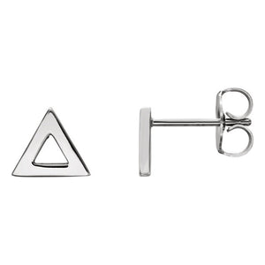 A timeless classic design fashioned from polished sterling silver featuring tiny 7 x 7mm (1/4 inch) open triangle studs with friction back posts. This is a made to order item and is estimated to ship in about 6-8 days. Please email service@theblackbow.com for more details.