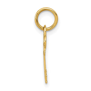 Featuring a shamrock bow and a block initial bit, this charming petite key will help you create a subtle style that is all about you. It is fashioned from polished 14k yellow gold, measures approximately 5.7mm (3/16 inch) in width by 14.5mm (9/16 inch) in length and is finished with a soldered jump ring. Made in the U.S.A. Chain not included.