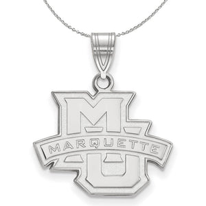 If you are a fan of Marquette University and the Golden Eagles then you need to show your school spirit with this Marquette University necklace. We are a certified college jewelry retailer and this authentic item is officially licensed. It is crafted from Sterling Silver and crafted by LogoArt in the USA. Includes a 16 Inch, 1.25mm cable chain.