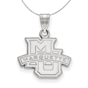 If you are a fan of Marquette University and the Golden Eagles then you need to show your school spirit with this Marquette University pendant. We are a certified college jewelry retailer and this authentic item is officially licensed. It is crafted from Sterling Silver and crafted by LogoArt in the U.S.A. Includes a 1.25mm, 20 Inch sterling silver cable chain.