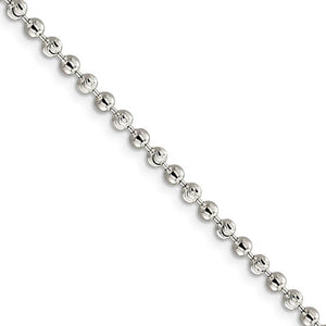 Round polished and diamond-cut beads gleam along the length of this sterling silver chain necklace that measures 3mm in width by 20 inches in length. It features a lightweight hollow link design and closes with a fancy lobster clasp. Made in Italy.