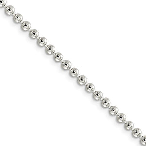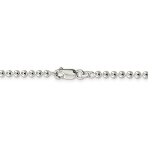 Small round balls gleam along the length of this polished sterling silver chain that measures 3mm in width. It features a hollow link design that provides lightweight comfort and comes ready to wear with a secure, lobster-claw closure. 20 inches in length.