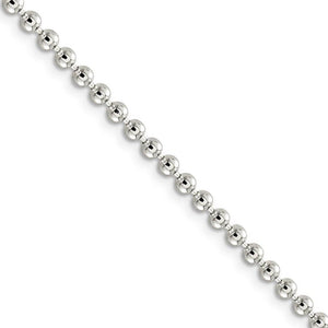 Small round balls gleam along the length of this polished sterling silver chain that measures 3mm in width. It features a hollow link design that provides lightweight comfort and comes ready to wear with a secure, lobster-claw closure. 18 inches in length.