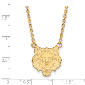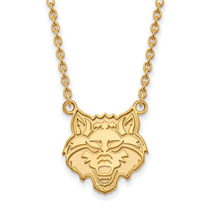 If you are a fan of Arkansas State University and the Red Wolves then you need to show your school spirit with this Arkansas State University necklace. We are a certified retailer and this authentic item is officially licensed. It is crafted from 14k yellow gold plated sterling silver and crafted in the USA. 18 inches in length. This item is not currently in-stock. Once you place your order, please allow us 5 to 7 business days to make it for you.
